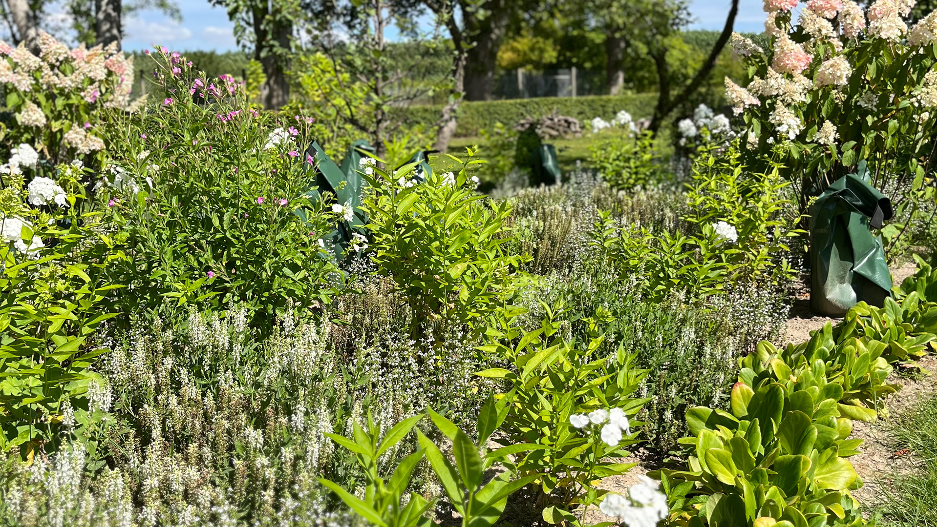 Haverne og læhegnet om gården er restaureret, så der igen kan høstes frugt, grønt og blomster til glæde for gæster i huset og på Café Fjordliv og Restaurantskibet Sagafjord på Roskilde havn.