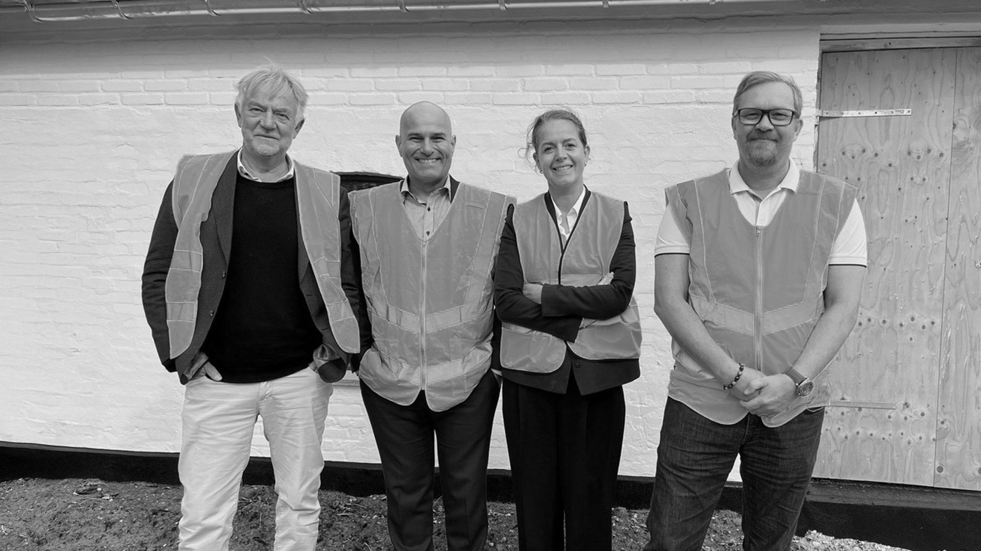 Bestyrelsen Liljeborg Aktieselskabs bestyrelse på byggeplads-besøg 2025.(Fra venstre) Jan-Ole Hansen, Martin Høyer-Hansen (formand), Lærke Hein og Christian Enevoldsen.